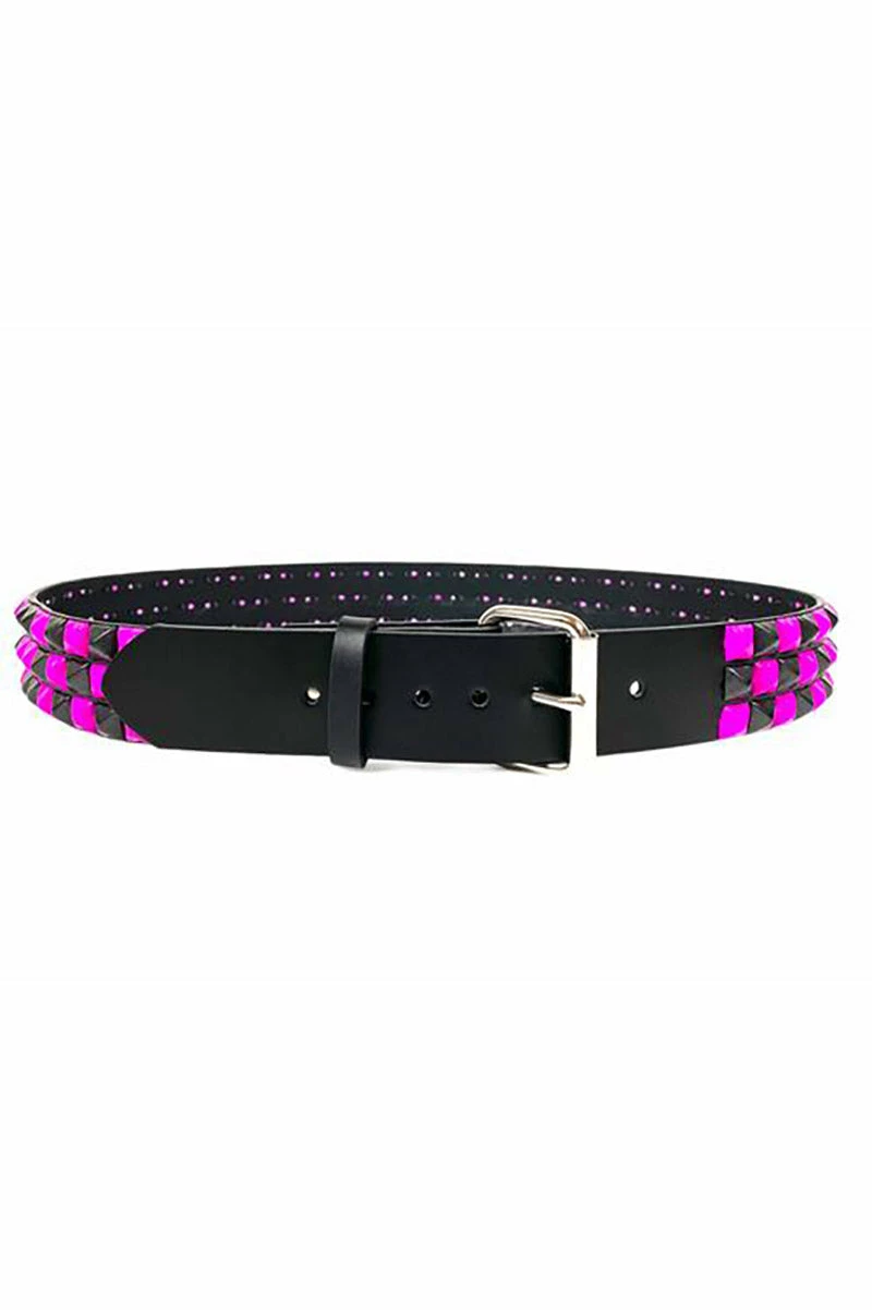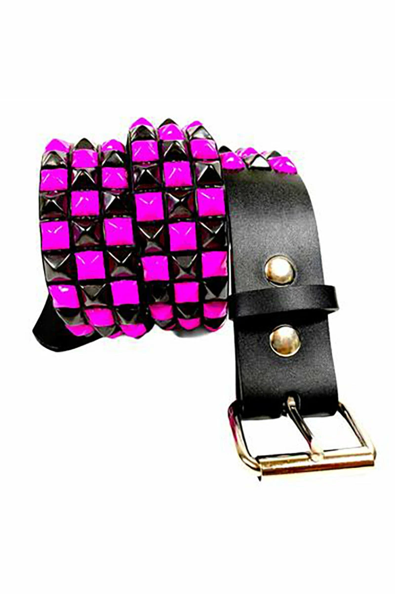 Live your best emo afterlife in this checkered belt, hot pink and black as night! Add kills to your heartbreak hit list in the genuine leather construction and three rows of pyramid studs. Finished with an adjustable silver buckle closure for the perfect punk fit.
