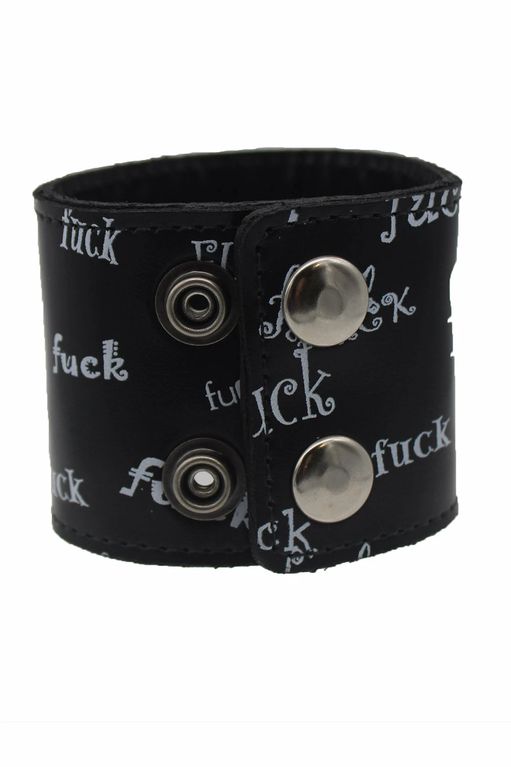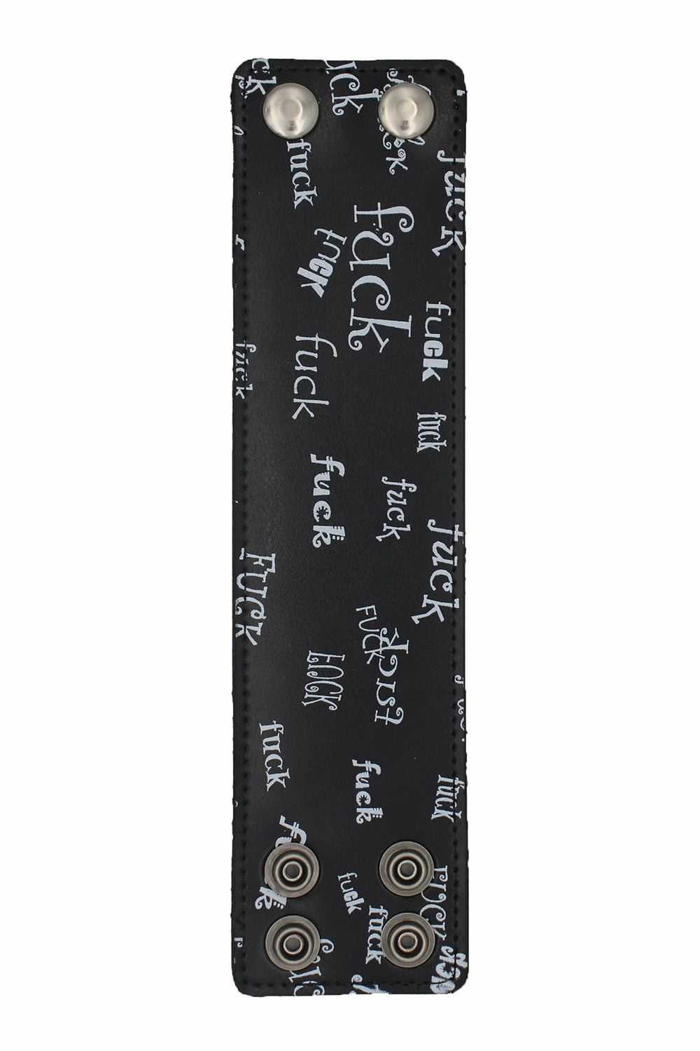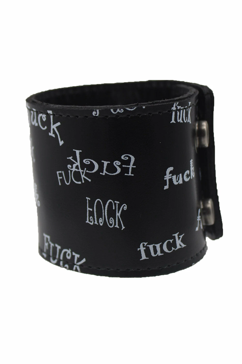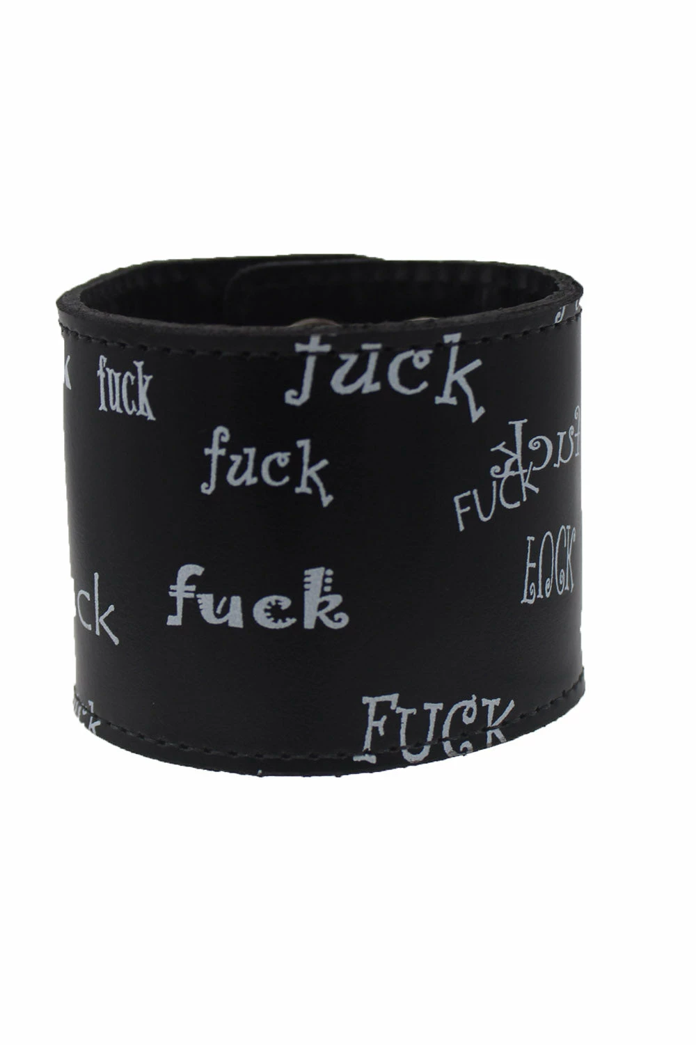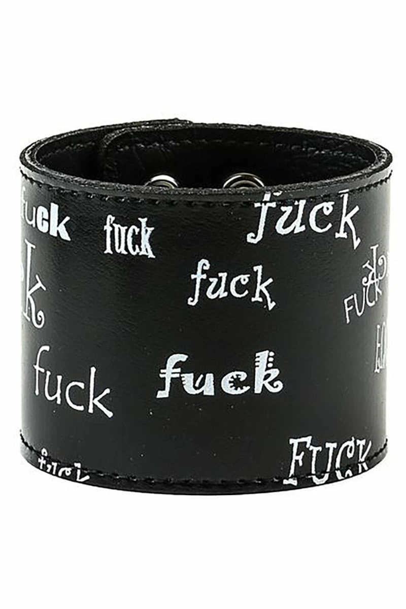 Tell the world to f*ck off with this expletive bracelet, made for punks who just don’t give a fuck! Raise hell in the durable design, constructed of genuine leather. Give ’em the middle finger with the statement FUCK OFF lettering printed all over in various fonts. Finished with a silver snap button closure for a fierce fit.