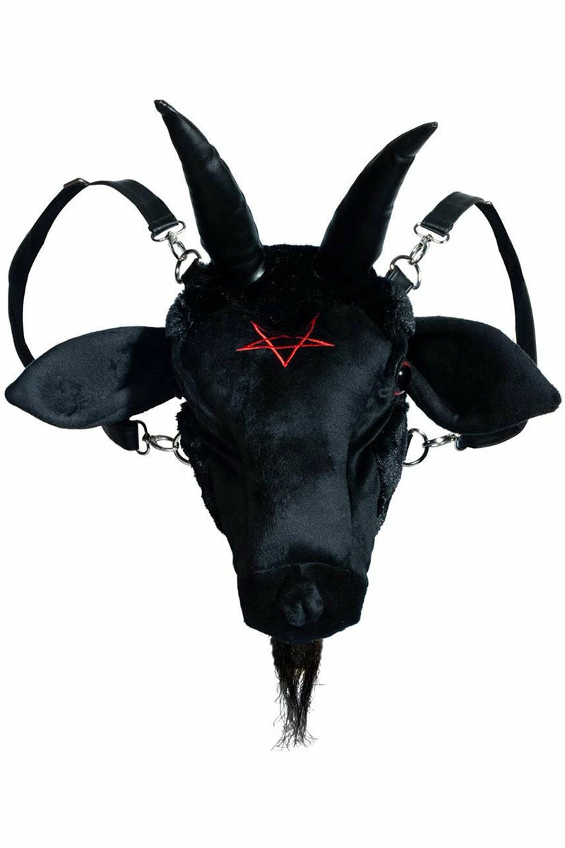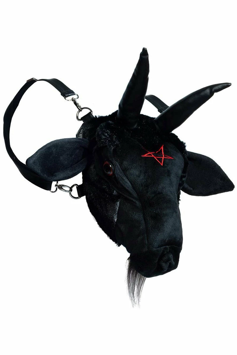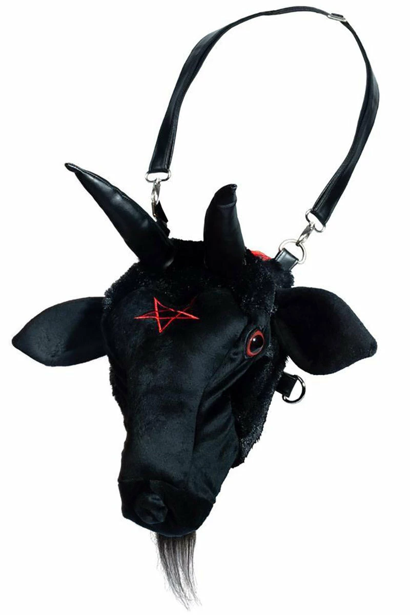 You’re as evil as you’re cute with this gothic Baphomet bag, possessed with an embroidered pentagram, demonic red bead eyes, vinyl horns, and tufted beard. With a multi-way strap, use this plush purse as a backpack, crossbody bag, or handbag! Tote your essentials in this occult purse, featuring a sizable main compartment complete with a zipper pull. Next time you leave the crypt, bring Baphomet with you!