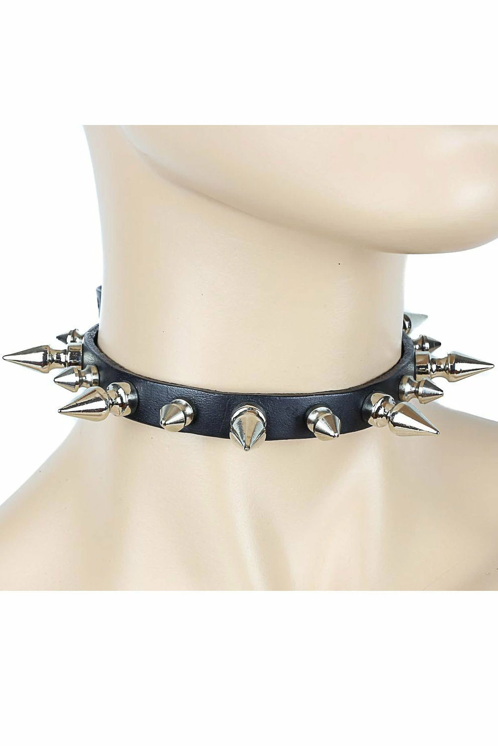 Add some anarchy to your afterlife in this hella hardcore collar, haunted with alternating sized spikes! Made of genuine leather, this statement choker is punk AF with its alternating sized spikes. Complete with a buckle close for the sinfully perfect fit.
