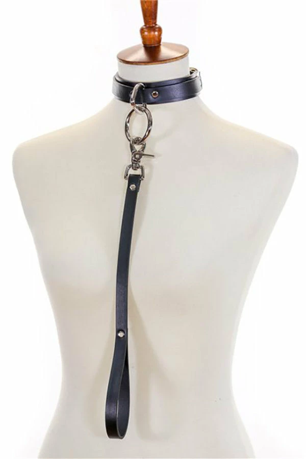 Take me for a walk cause I’ve been a bad bae. Walk on the wild side with this black bondage collar, complete with a statement o-ring and t-ring hardware. Made of genuine leather, this gothic collar includes a dominate leash so daddy can lead the way.