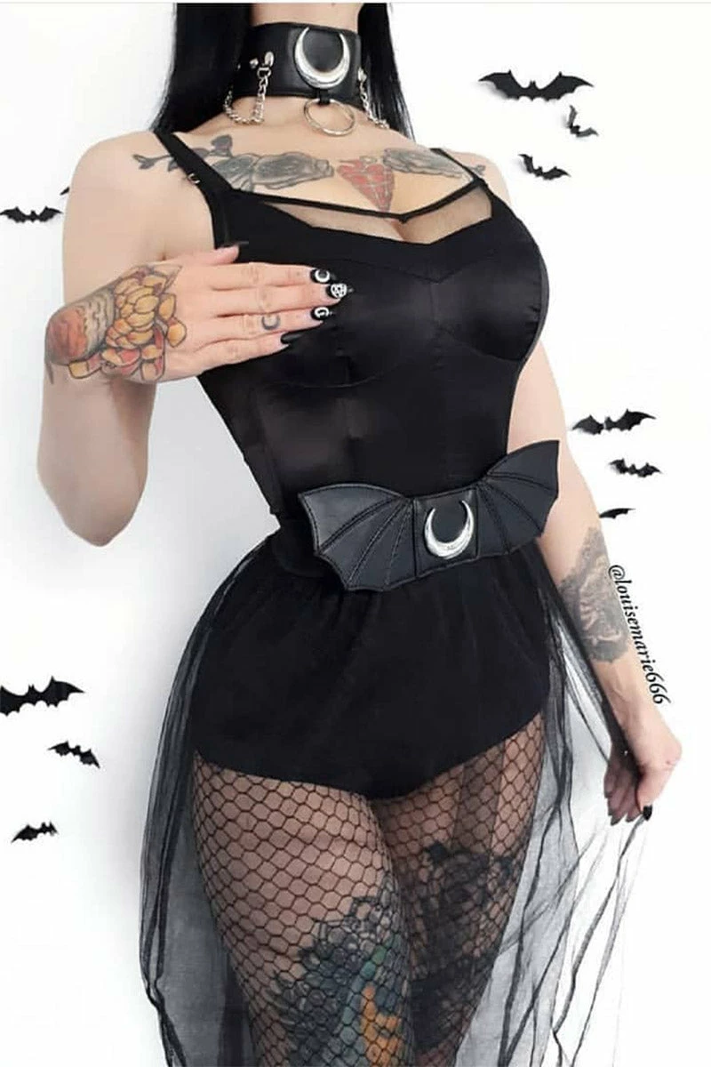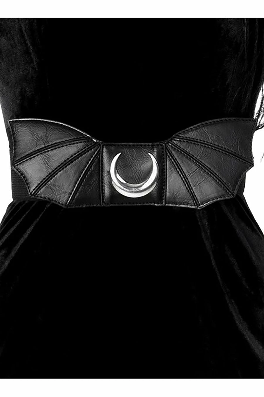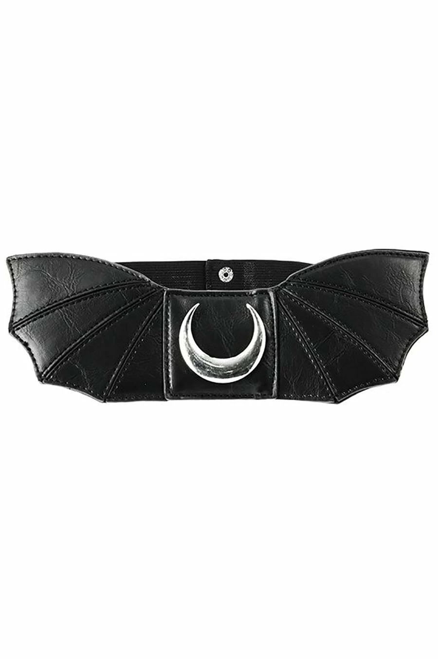 Take flight with this batty belt! A silver crescent moon haunts the center—beautiful bat wings romance the sides! Highlight your hips in the high-waisted fit, designed to flatter your feminine figure. Complete with a stretchy elastic band to keep you comfy & creepy.