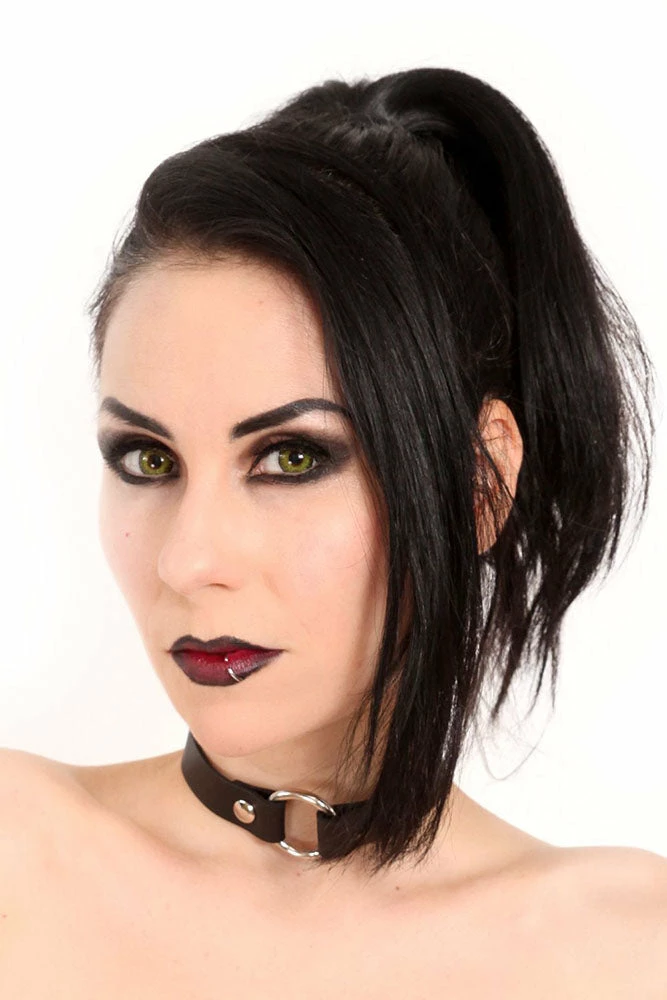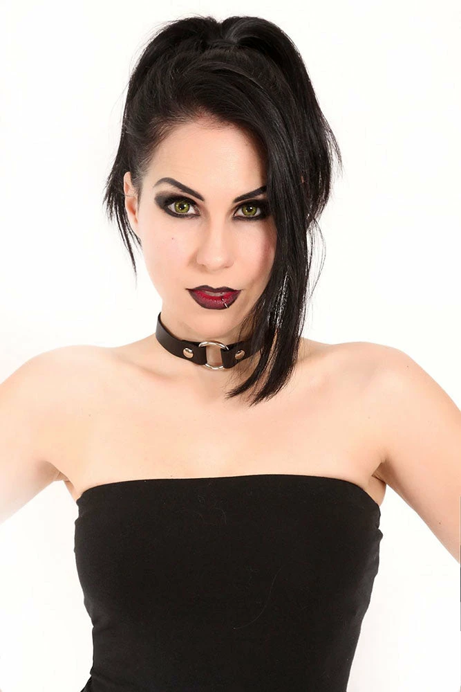 Every goth girl and boy needs a statement choker to creep out their closet. This staple o-ring collar is constructed of deluxe leather and metal hardware. Wear it all night + day to summon some sexy spooks to your style!
