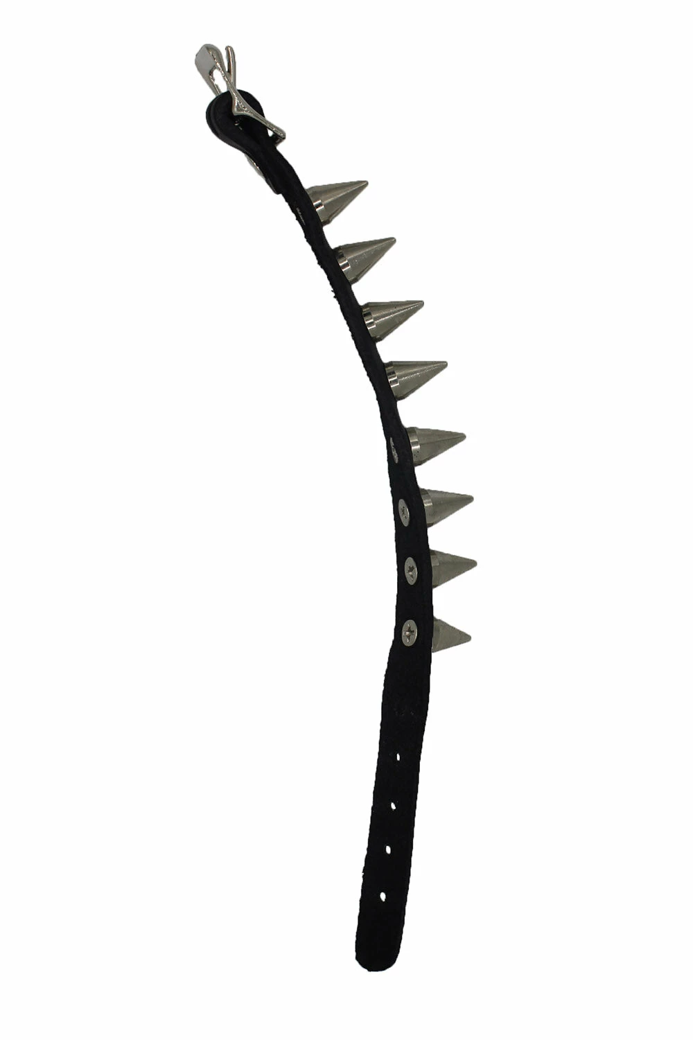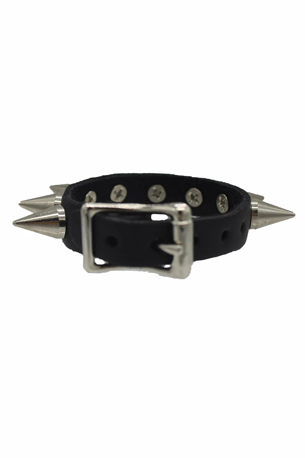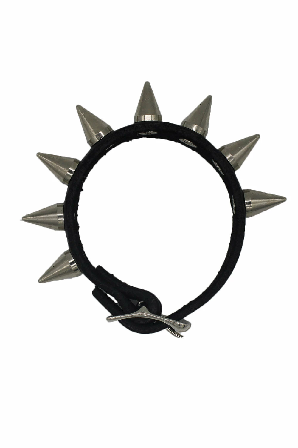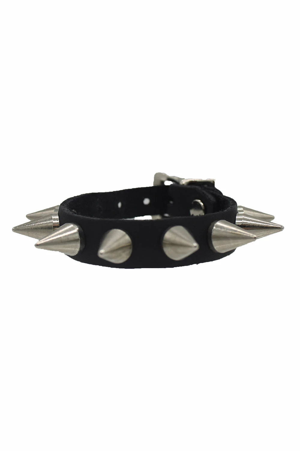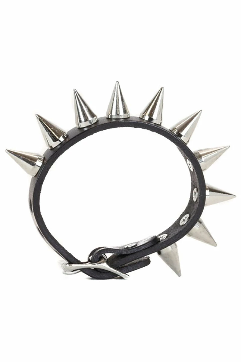 Keep normies away with this hella hardcore + super spiked bracelet! Summon scares to your style with the silver cone spikes and adjustable buckle close for the perfect fit. Constructed of genuine leather cause you’re punk AF!