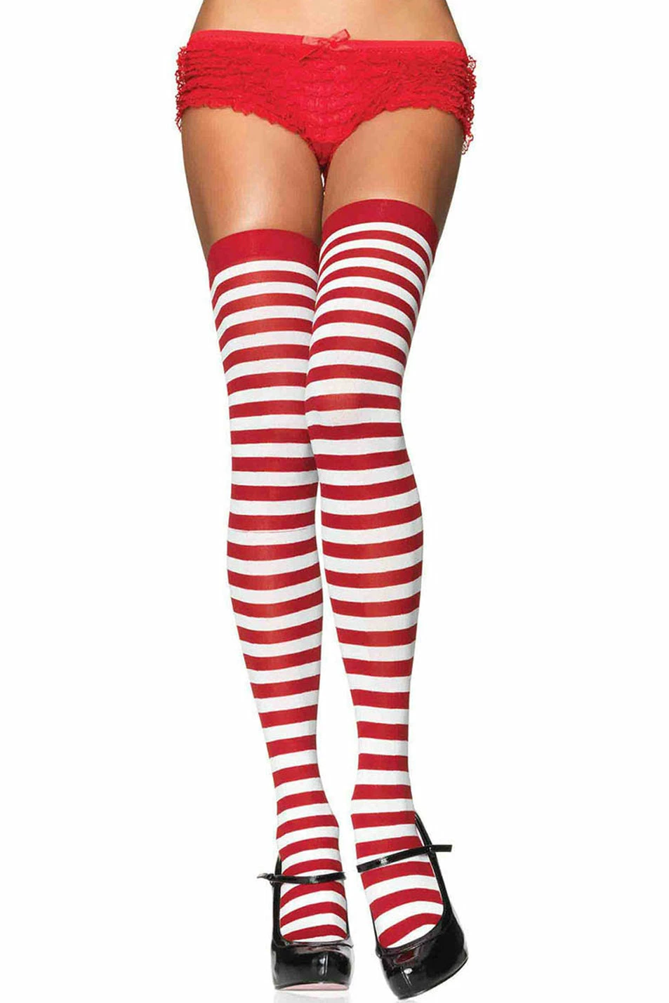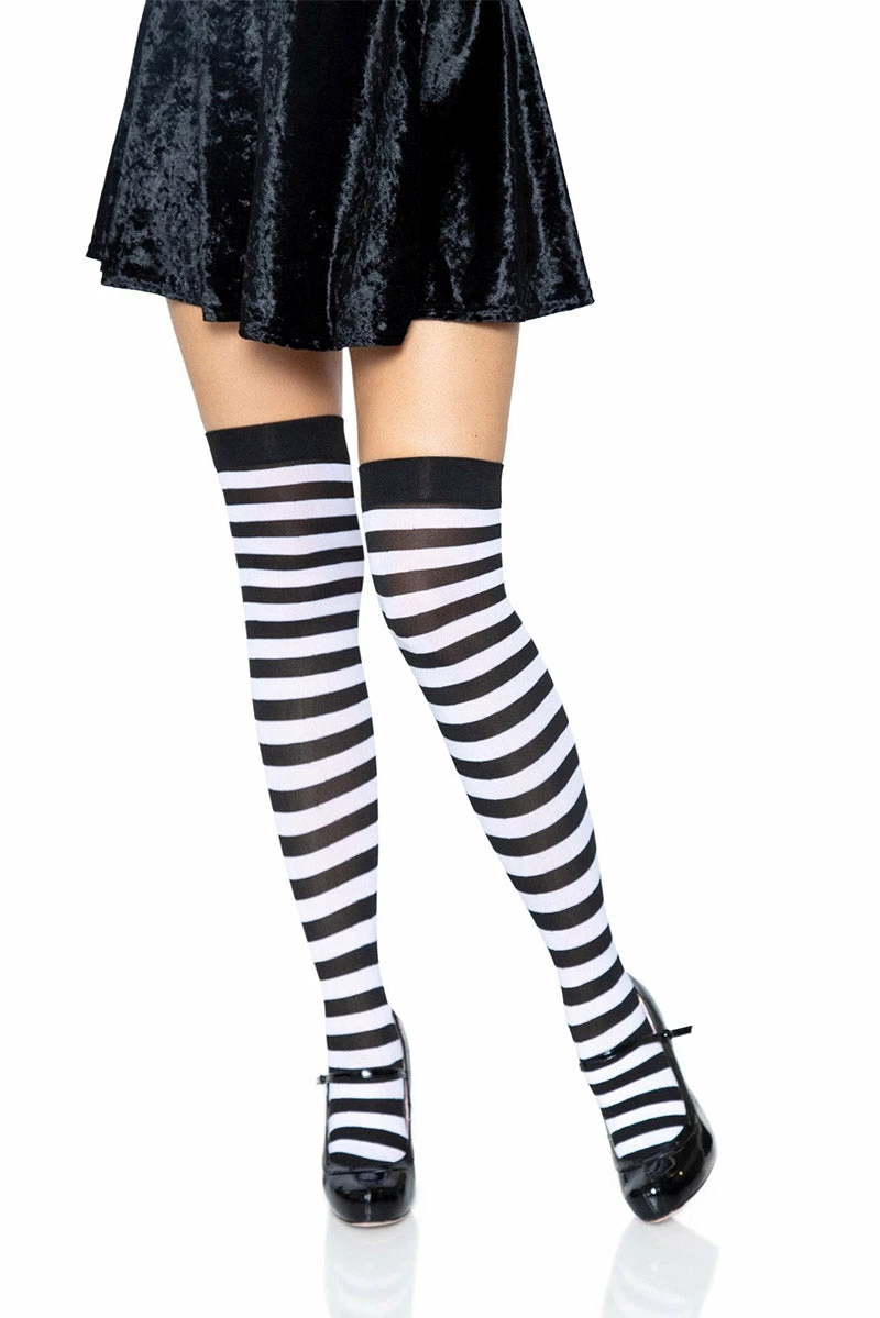 Be the Queen of Halloween in these sexy striped stockings. Slip these goth tights under a mini skirt or pair of shorts to add a spoonful of spook to your look. Featuring statement stripes of various colors to tease and please!