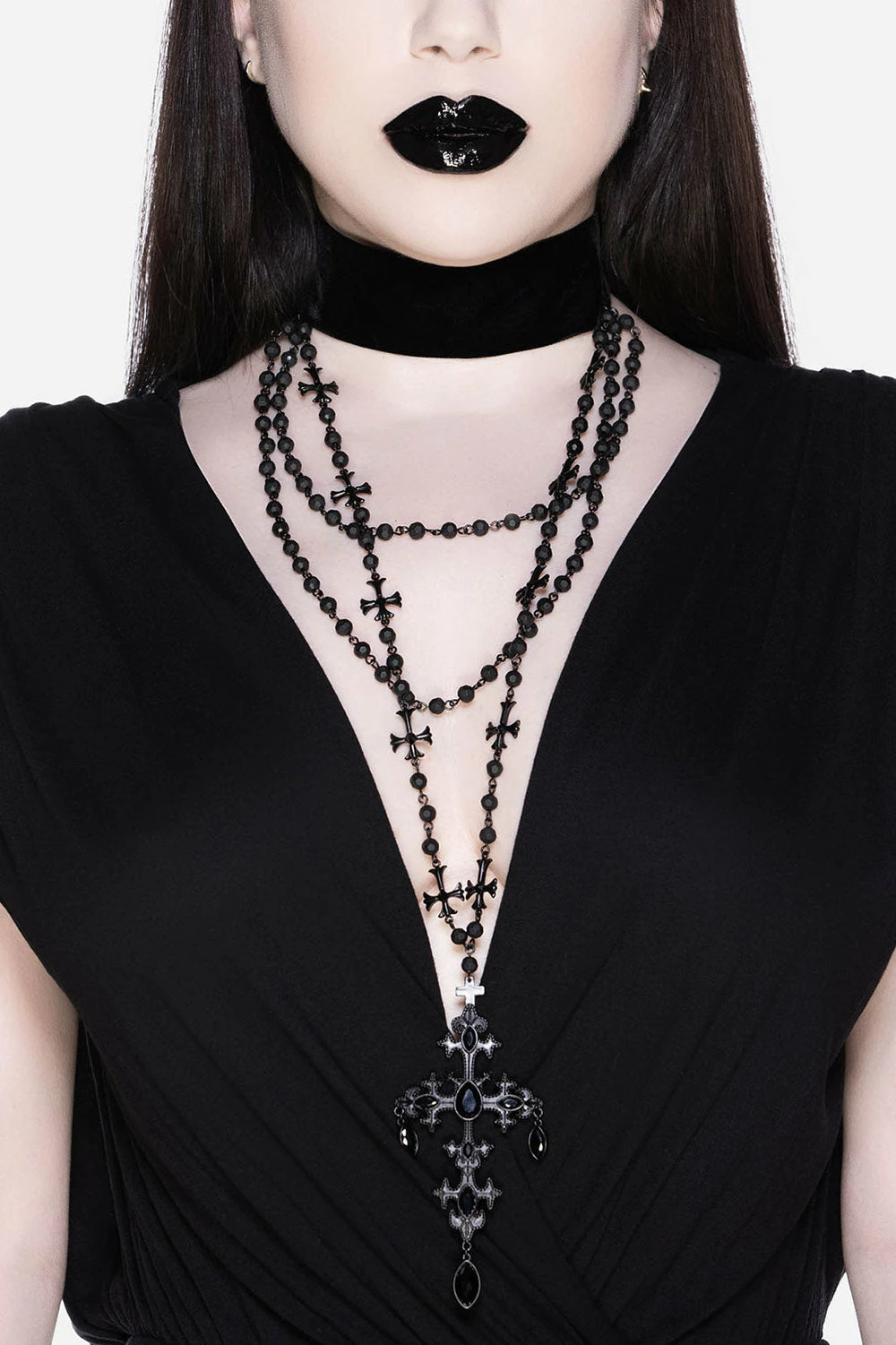 A perfect statement choker, ‘Summon The Night’ combines statement cascading chains with a cross detail and adjustable back. Brings any outfit to life.